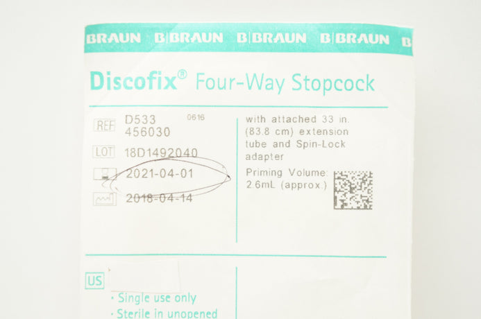 - B.Braun D533 456030 Discofix 4-Way Stopcock w/Tube 33inch x 2.6ml (x)