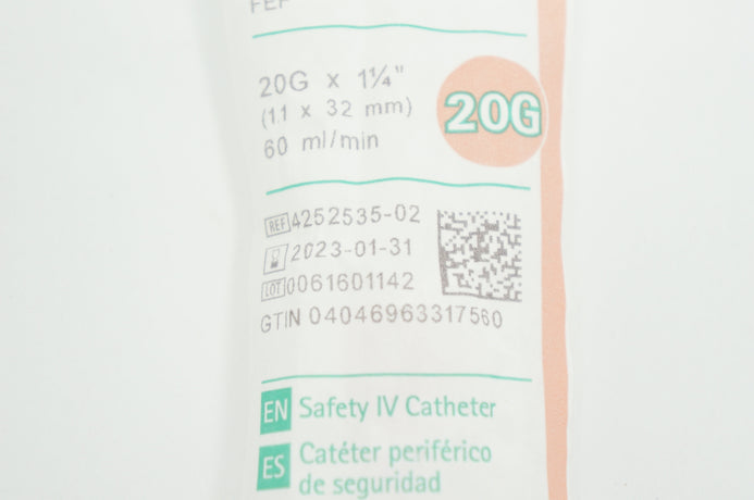 B. Braun Introcan Safety IV Cath. 20G x 1 1/4inch 60ml/min