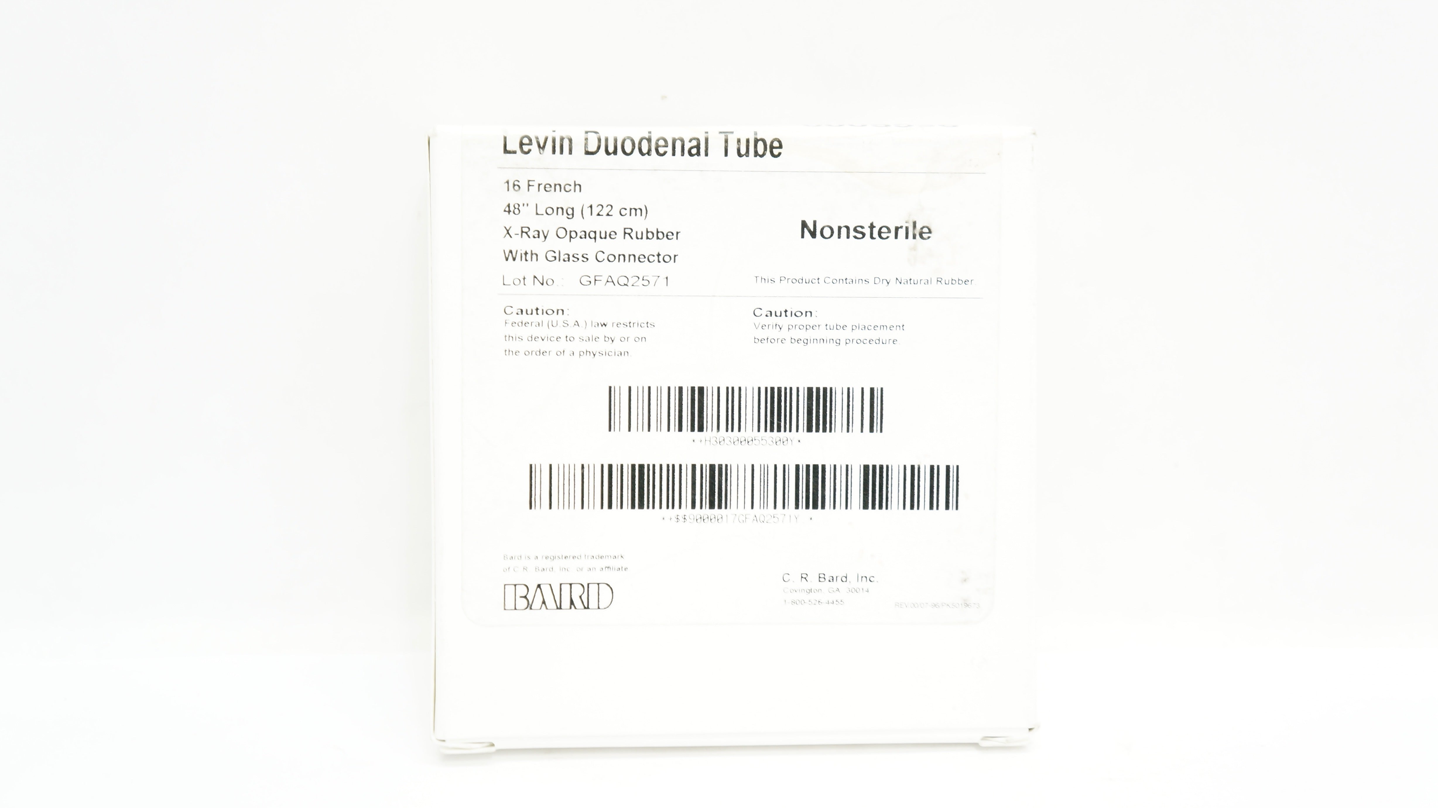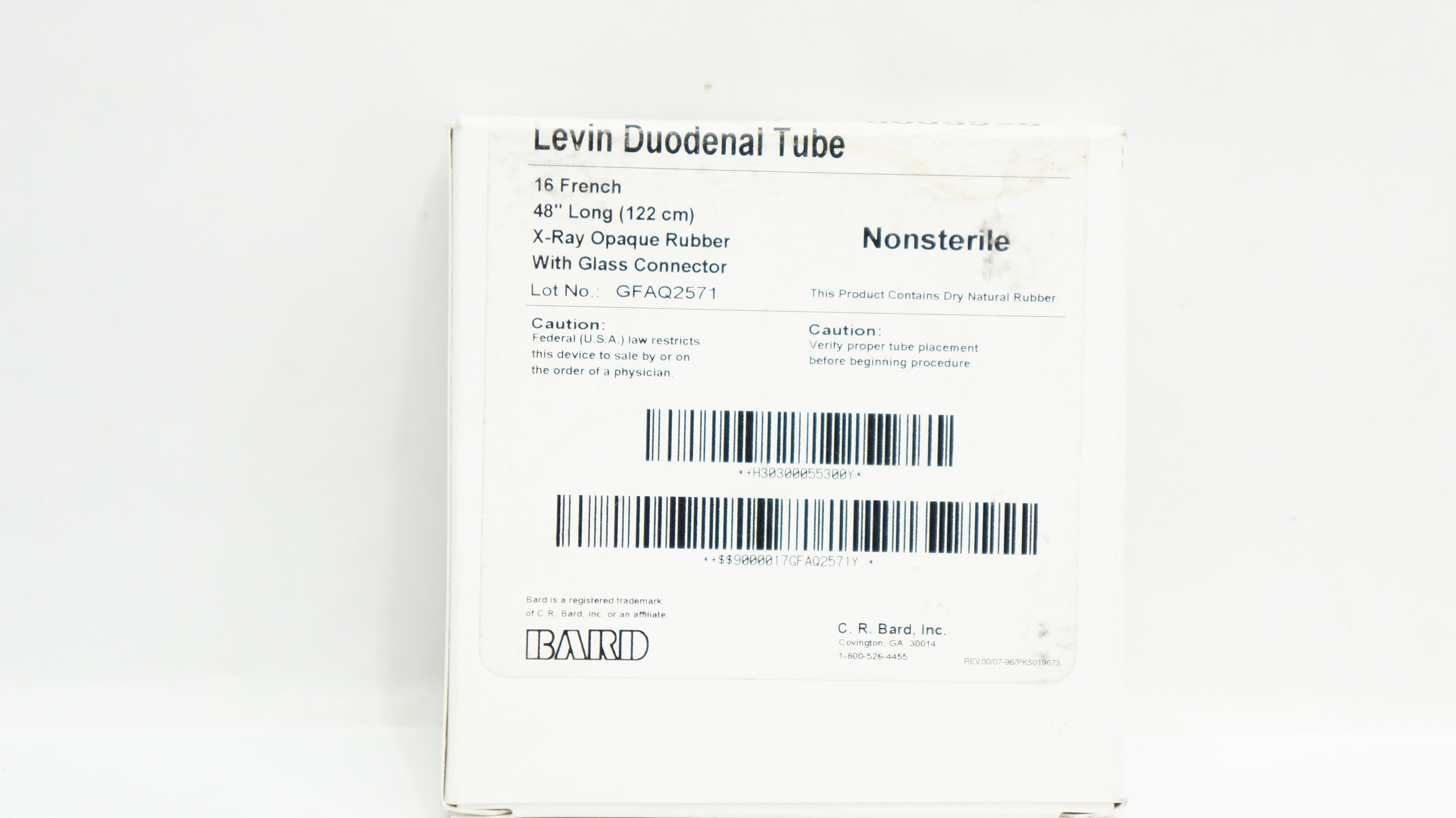Bard 0005530 Levin Duodenal Tube 16Fr x 48inch X-Ray Opaque Rubber w/Glass Connector