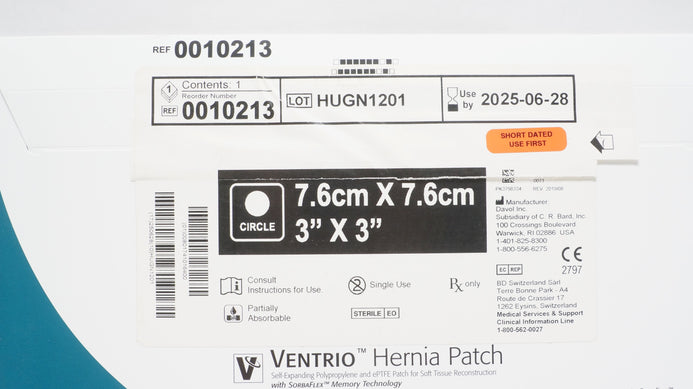 - Bard 0010213 VENTRIO Hernia Patch for Soft Tissue Reconstruction 3 x 3inch (x)