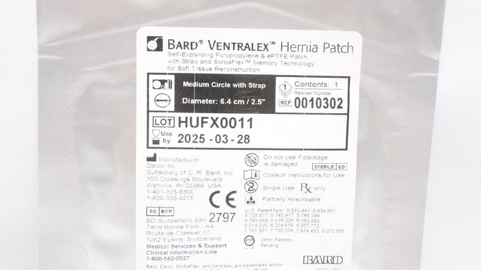 - Bard 0010302 Davol Ventralex Hernia Patch Medium, Circle with Strap 2.5inch (x)