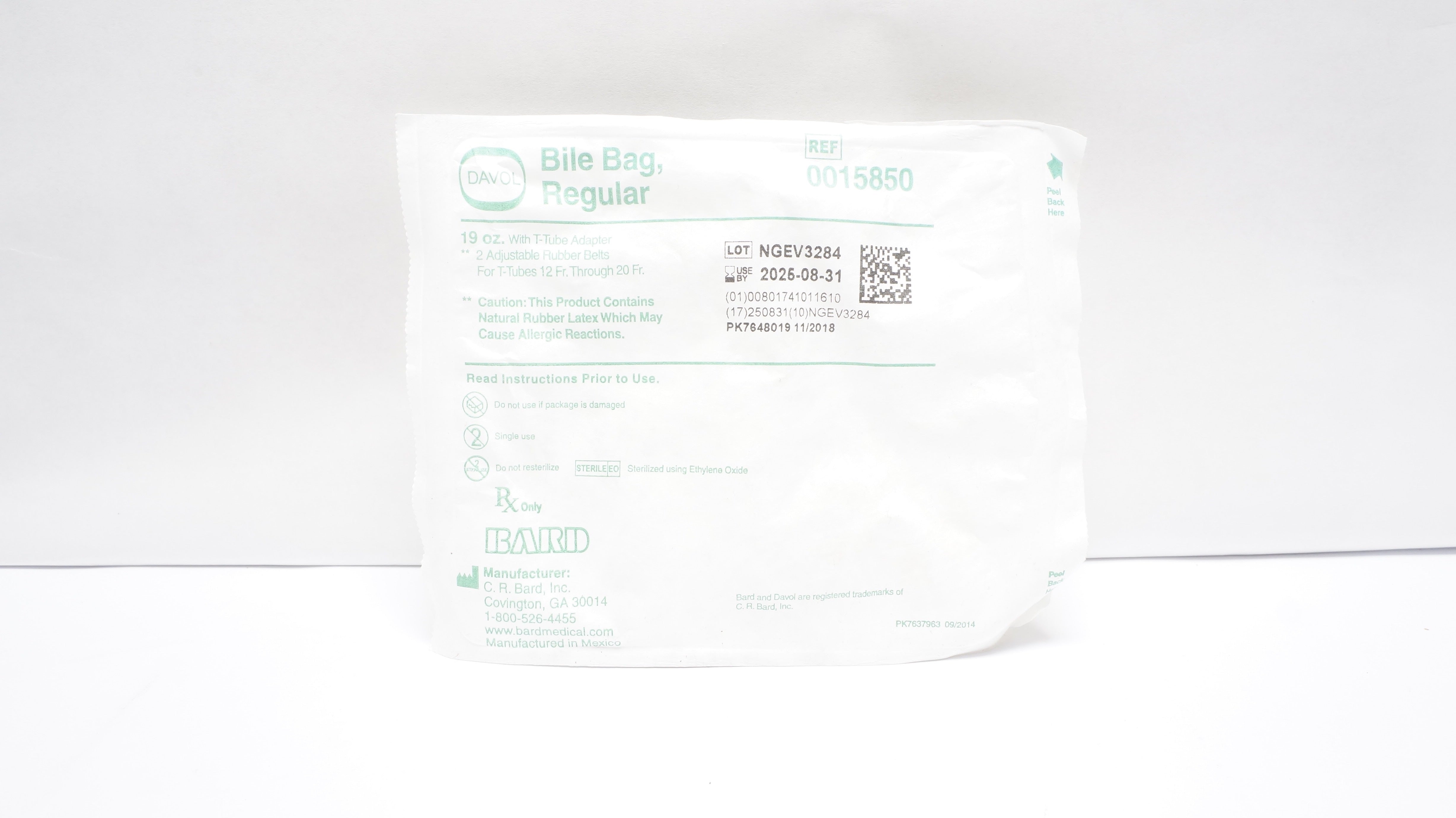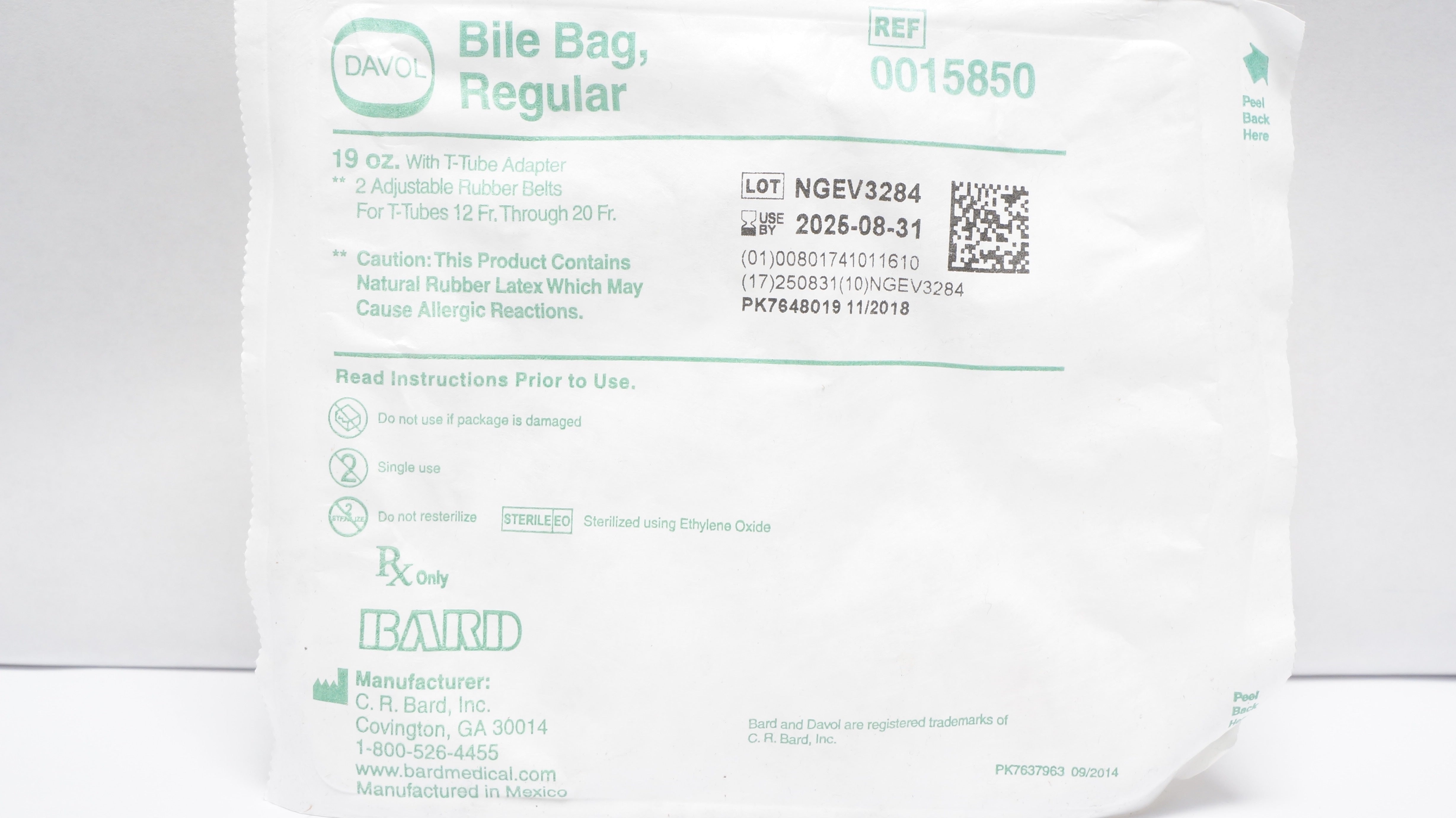 - Bard 0015850 Davol Bile Bag, Regular 19oz with T-Tube Adapter (x)