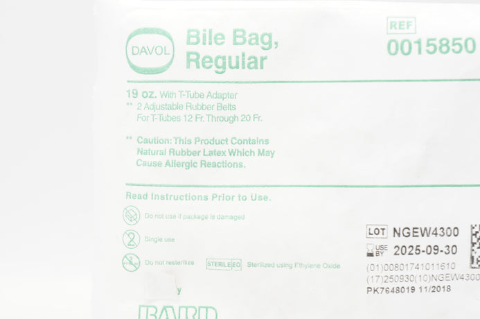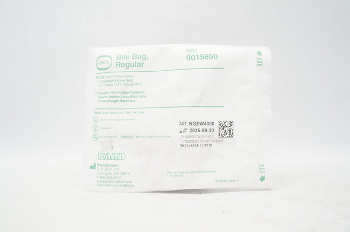 - Bard 0015850 Davol Bile Bag, Regular with T-Tube Adapter
