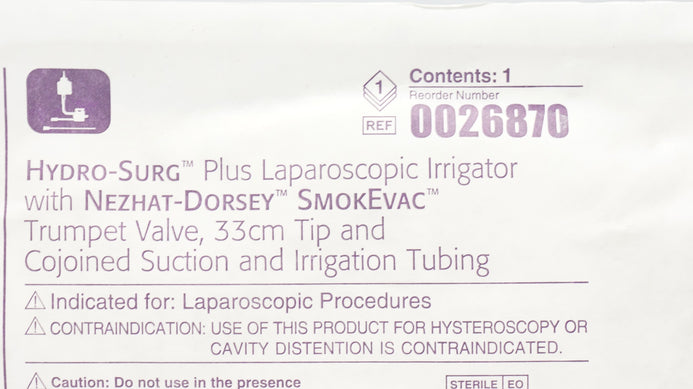 - Bard 0026870 Hydro-Surg Plus Laparoscopic Irrigator W/Trumpet Valve 33cm Tip (x)