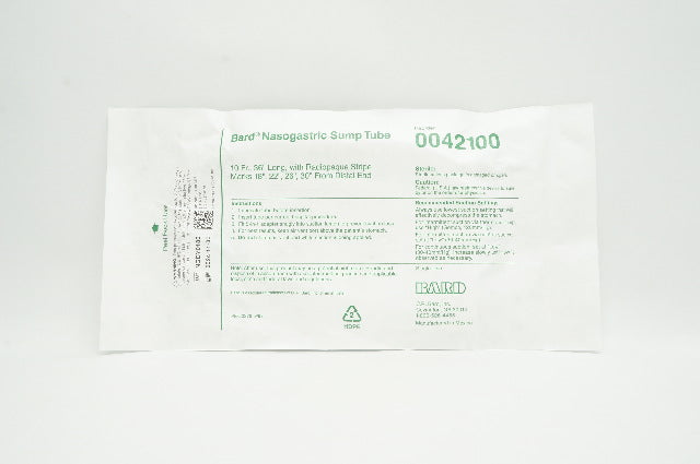 Bard 0042100 Nasogastric Sump Tube 10Fr x 36in Long With Radiopaque Stripe Marks 18in, 22in, 26in, 30in from Distal End