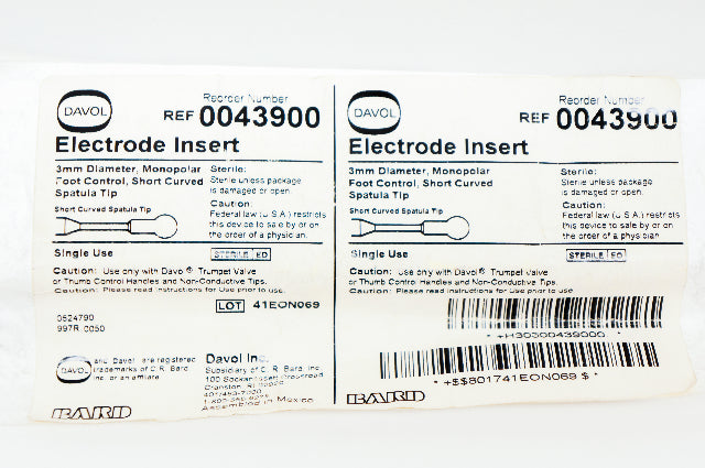 - Bard 0043900 Davol Electrode Insert 3mm Diameter
