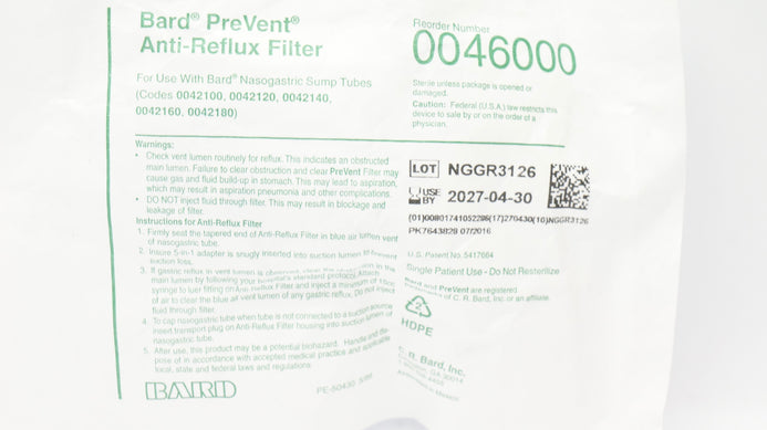 - Bard 0046000 PreVent Anti-Reflux Filter