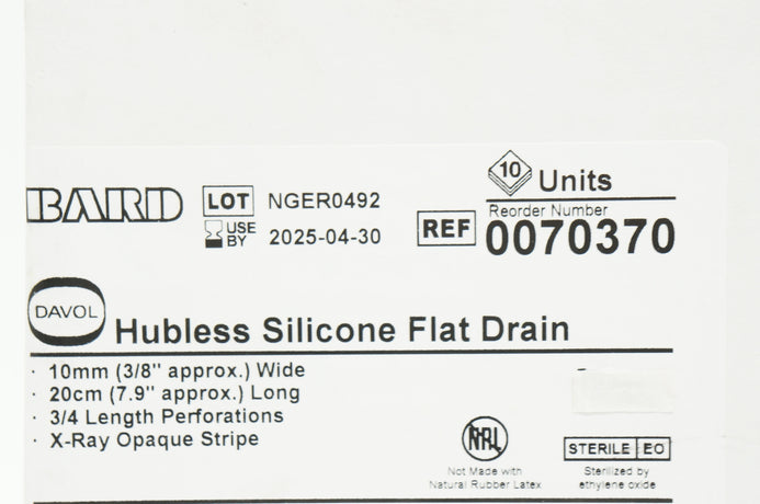 - Bard 0070370 Davol Hubless Silicone Flat Drain 3/8inch x 20cm - Box of 10