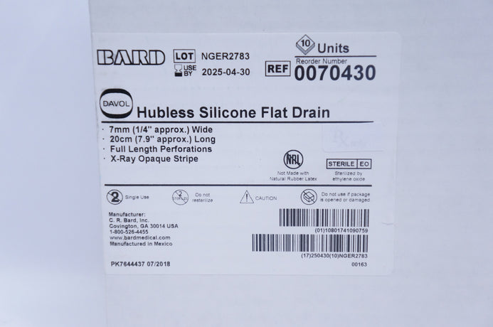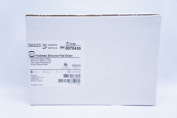 Bard 0070430 Davol Hubless Silicone Flat Drain 7mm x 20cm - Box of 10