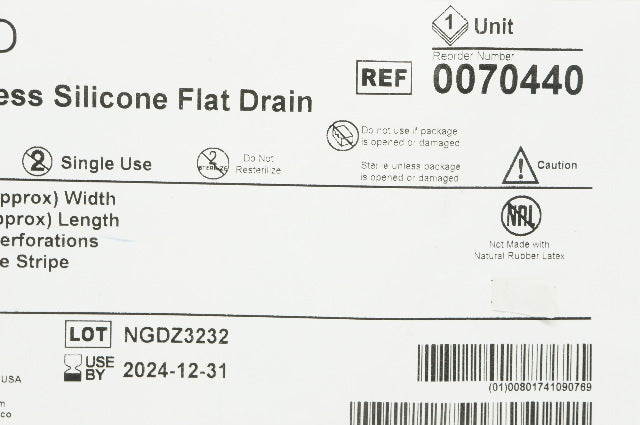 Bard 0070440 Davol Hubless Silicone Flat Drain 3/8inch x 7.9inch