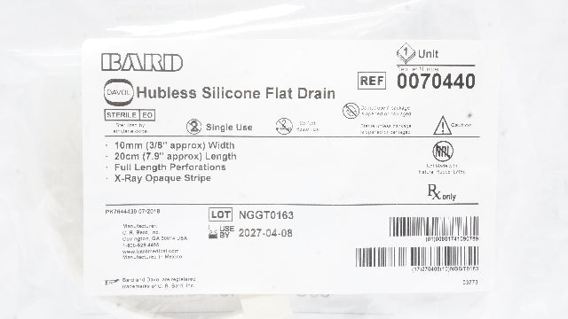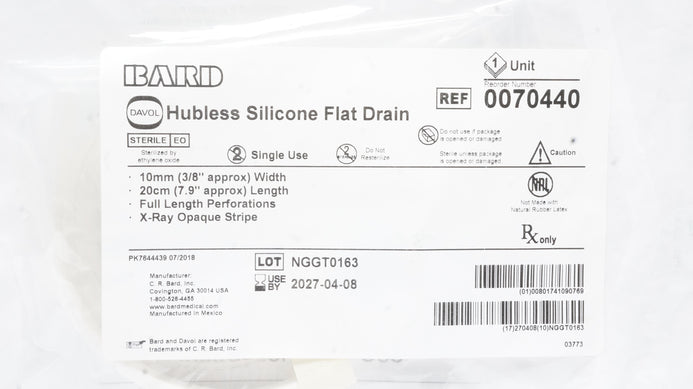 - Bard 0070440 Davol Hubless Silicone Flat Drain 3/8inch x 7.9inch