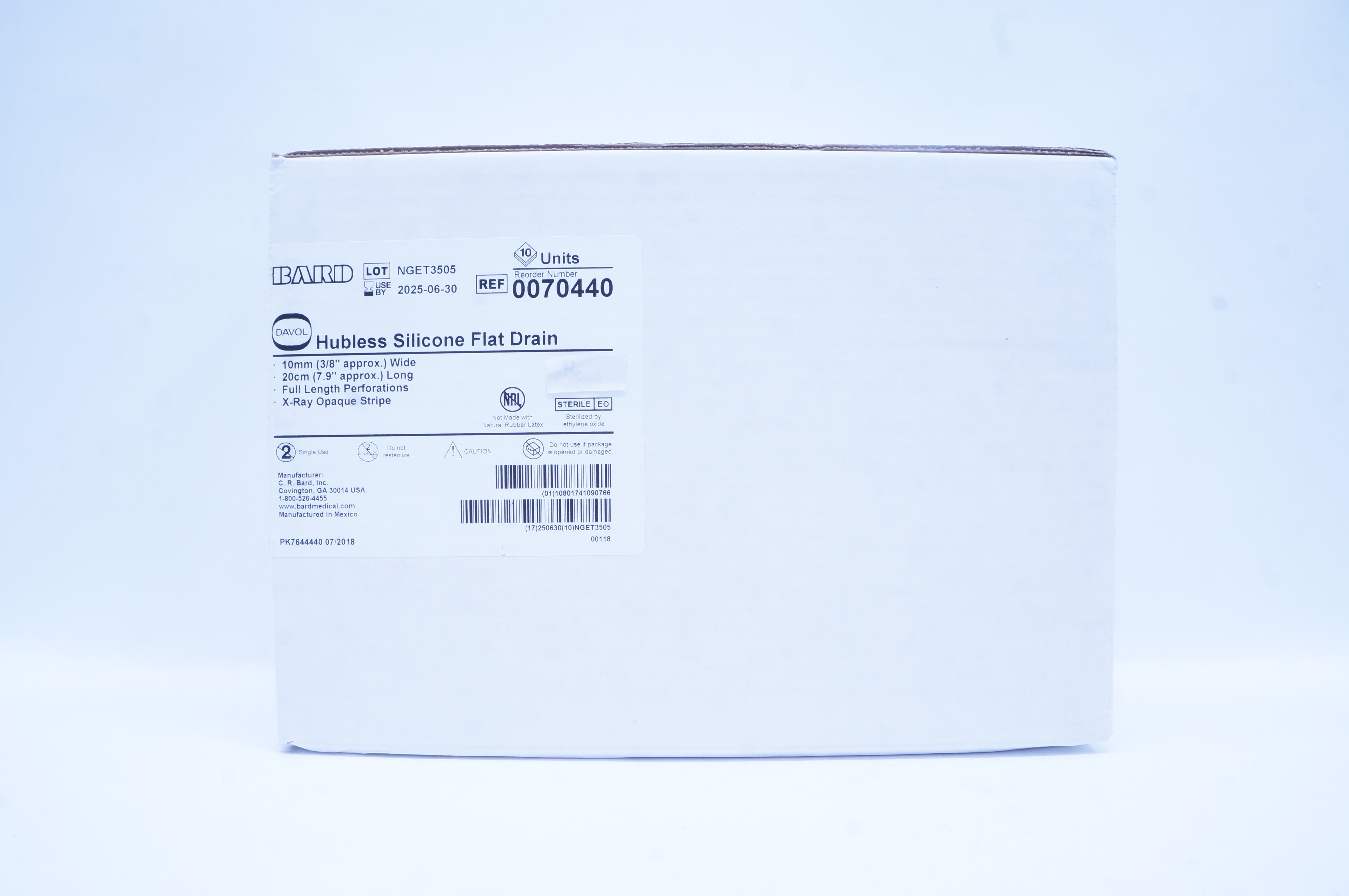 Bard 0070440 Davol Hubless Silicone Flat Drain 3/8inch x 7.9inch - Box of 10