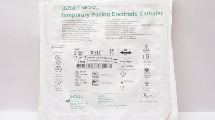 - Bard 007155P Temporary Pacing Electrode Cath. Goetz 5F, Bipolar 2.5cm Spacing