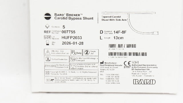 Bard 007755 Brener Carotid Bypass Shunt 14F-8F x 13cm -Box of 2