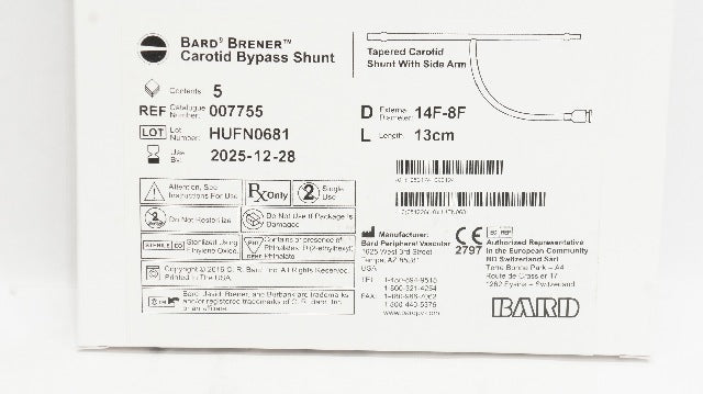 - Bard 007755 Brener Carotid Bypass Shunt 14F-8F x 13cm -Box of 5