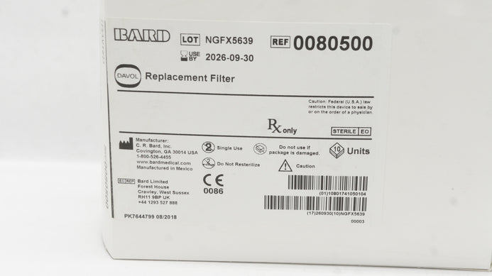 - Bard 0080500 Davol Replacement Filter - Box of 9