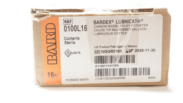 - Bard 0100L16 Bardex Foley Cath 16Fr 30cc Ribbed Balloon - Box of 12