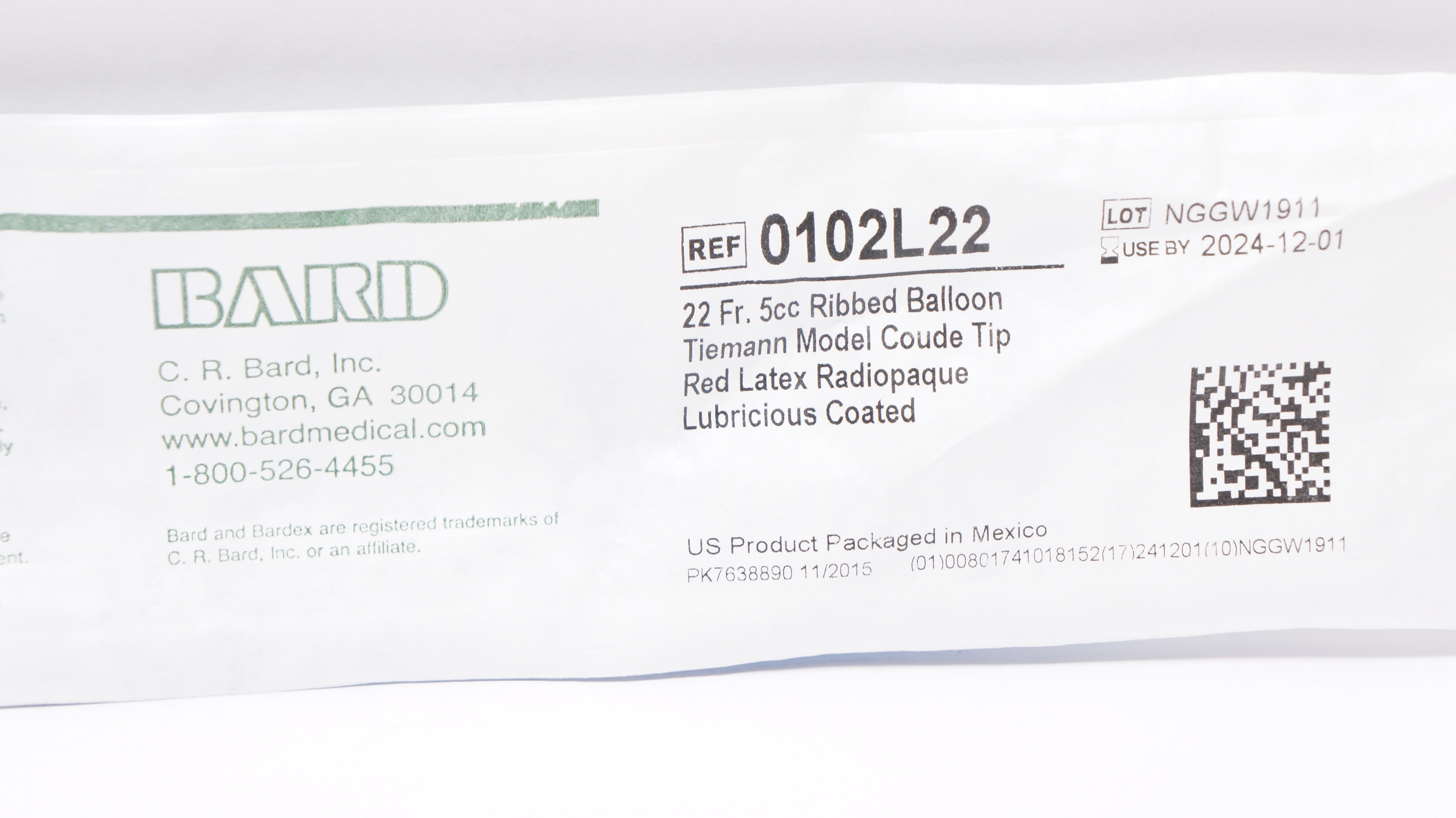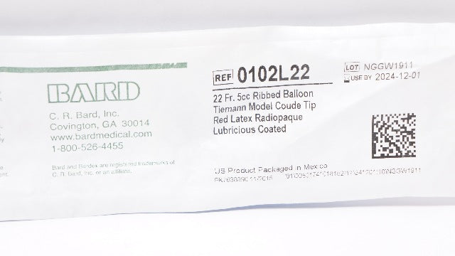 - Bard 0102L22 Bardex Foley Cath. 22Fr 5cc Ribbed Balloon Tiemann Model Coude Tip