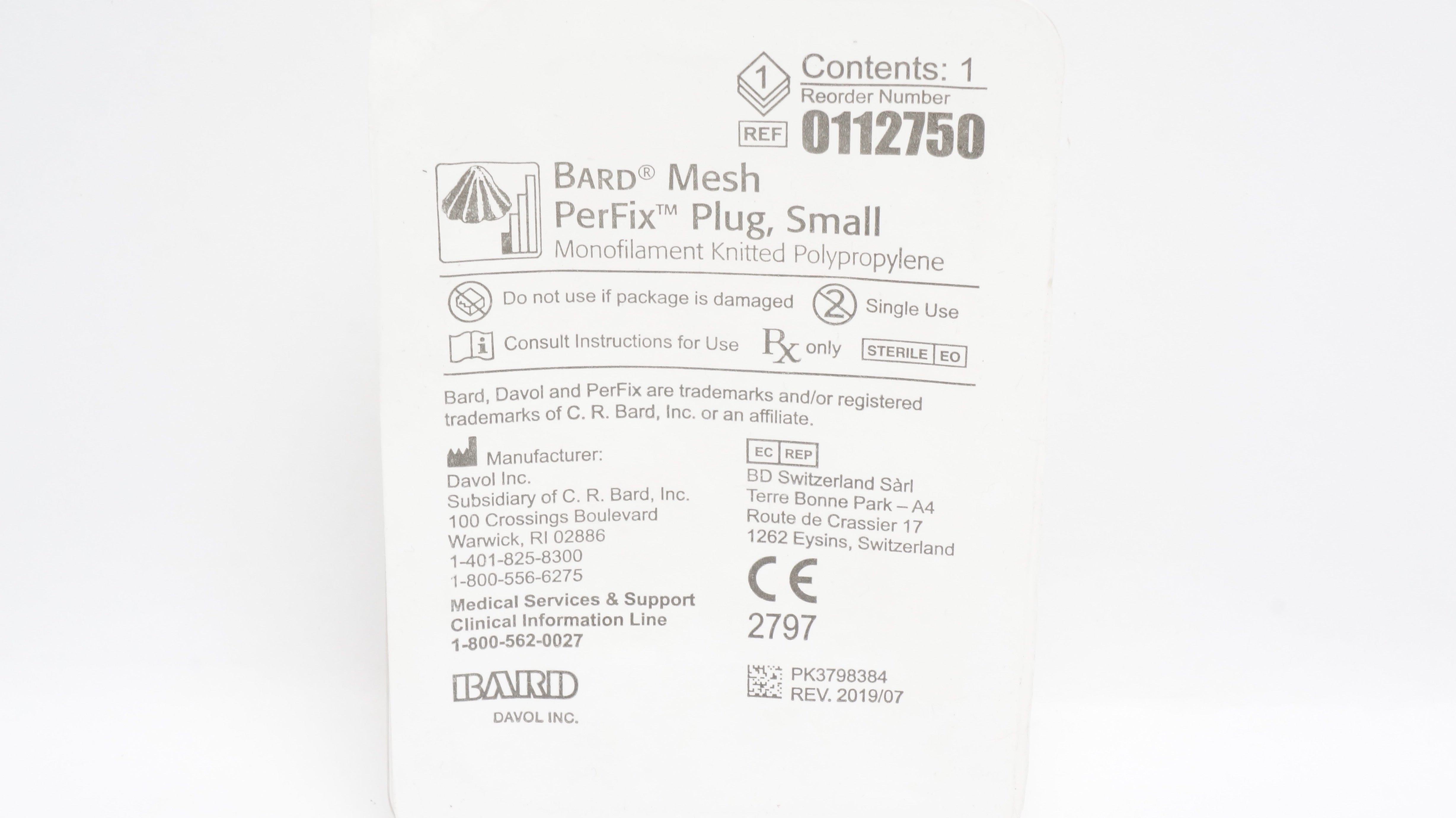 Bard 0112750 Mesh Perfix Plug Small Monofilament Knitted Polypropylene (x)