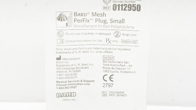 - Bard 0112950 Davol Mesh PerFix Plug Small Monofilament Knitted Polypropylene