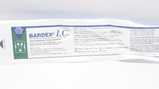 Bard 0119SI18 Bardex Anti-Infective Foley Catheter 18Fr 5cc Ribbed Ballon Short Tip 3Way Continuous Irrigation Bacti-Guard Silvr/Lubricious Coated
