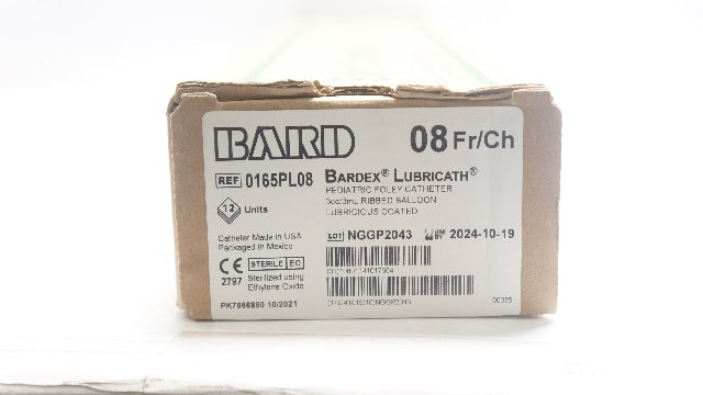 - Bard 0165PL08 Bardex Pediatric Foley Cath. 8Fr/Ch 3cc Ribbed Balloon - Box of 12