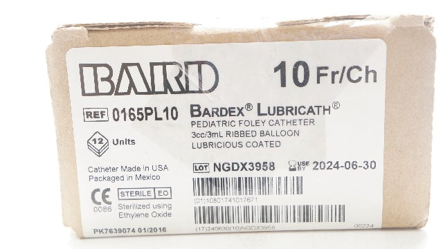 - Bard 0165PL10 Bardex Lubricath Pediatric Foley C a t h 10Fr (x) - Box of 12