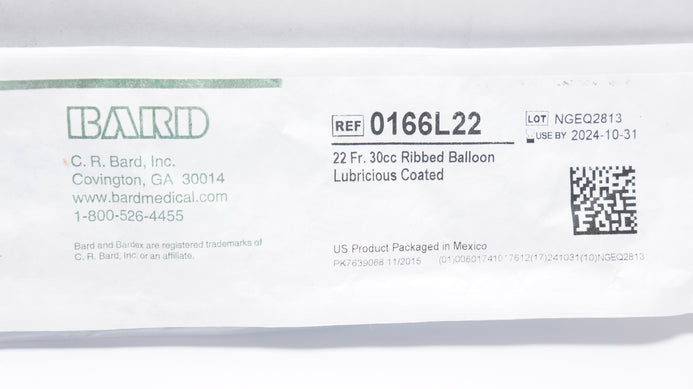Bard 0166L22 Bardex Foley Cathetr 22Fr 30cc Ribbed Balloon Lubricious Coated