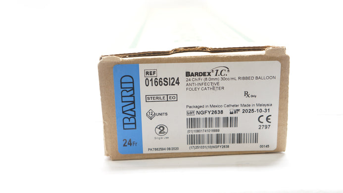 Bard 0166SI24 Bardex I.C. Anti-Infective Foley Catheter With Bard Hydrogel And Bacti-Guard Silver Alloy Coating 24Ch/Fr 30cc/mL Ribbed Balloon