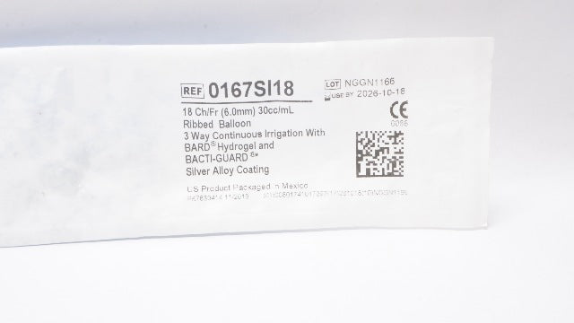 Bard 0167SI18 Bardex I.C. Anti-Infective Foley Catheter 18 Ch/Fr 30 cc/mL Ribbed Balloon 3 Way Continuous Irrigation with Bard Hydrogel and Bacti-Guard Silver Alloy Coating