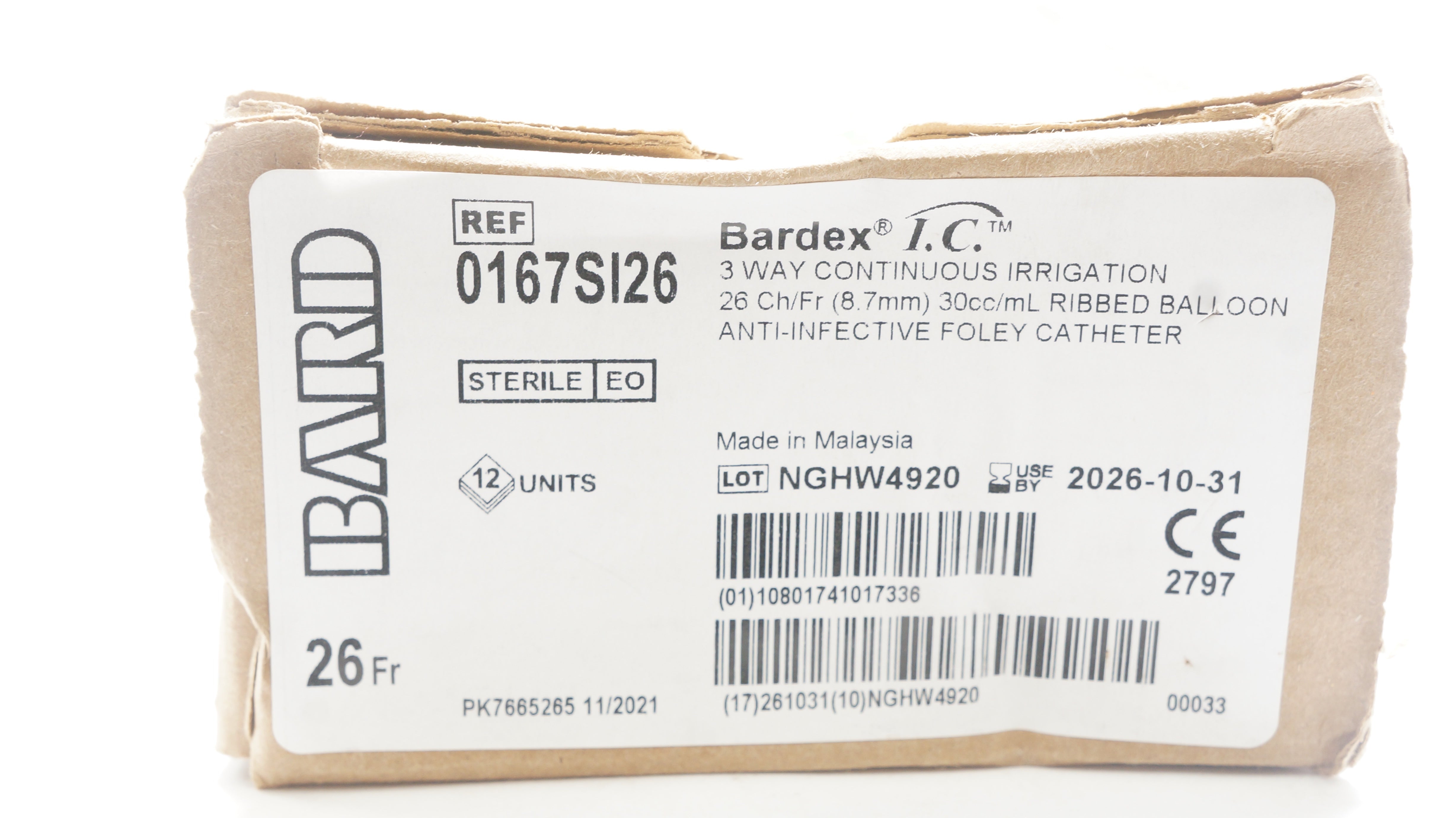 - Bard 0167SI26 Bardex I.C. Anti-Infective Foley Cath. 26Ch/Fr 30cc/mL - Box of 12