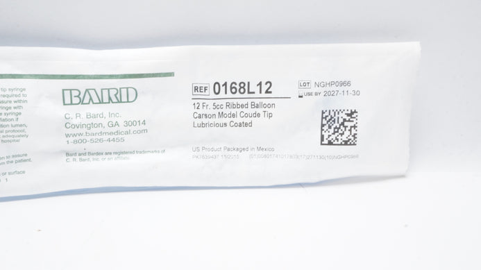 Bard 0168L12 Bardex Foley Catheter 12 Fr. 5cc Ribbed Balloon Carson Coude Tip Lubricious Coated