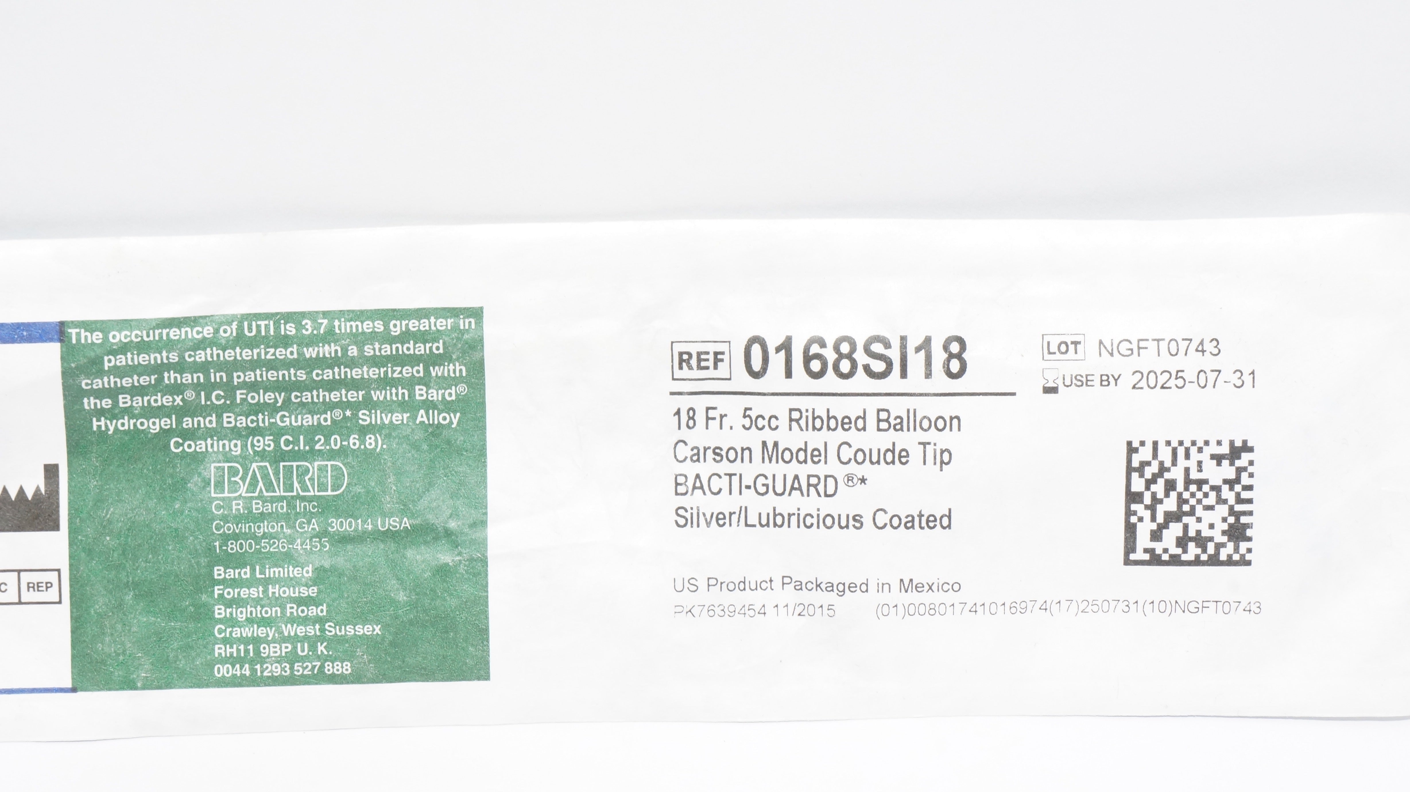 - Bard 0168SI18 Bardex I.C. Anti-Infective Foley Cath. 18Fr Ribbed 5cc Balloon (x)
