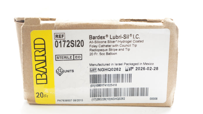 - Bard 0172SI20 Bardex Lubri-Sil I.C. Foley Cath. 20Fr 5cc Balloon - Box of 12