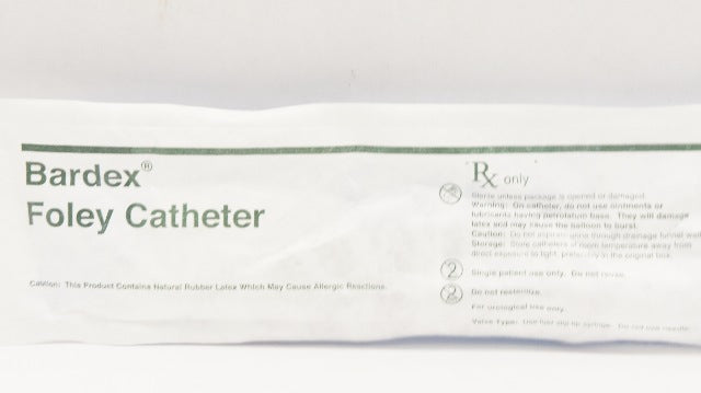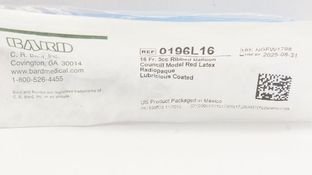 Bard 0196L16 Bardex Foley Catheter 16Fr 5cc Ribbed Balloon Councill Model Red Latex Radiopaque Lubricious Coated