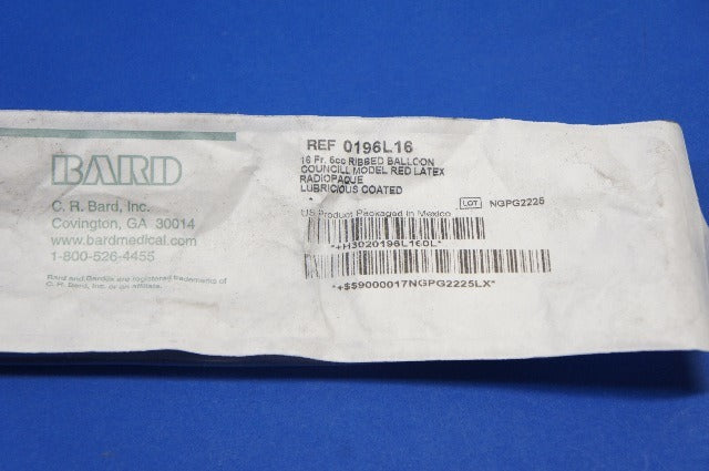 Bard 0196L16 Foley Cath Ribbed Balloon 16Fr 5cc
