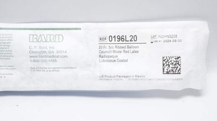 Bard 0196L20 Bardex Foley Cath. 20Fr. 5cc Ribbed Balloon, Councill Model