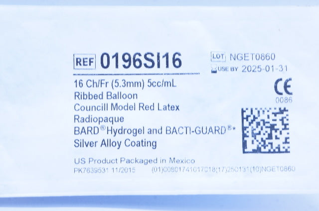 - Bard 0196SI16 Bardex I.C. Anti-Infective Foley Cath. 16 Ch/Fr x 5cc/mL Balloon