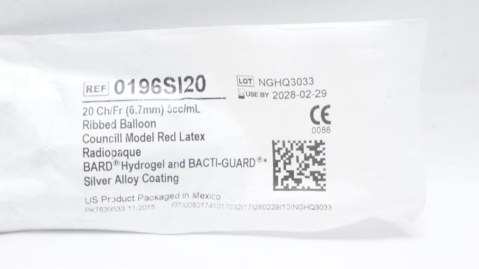 - Bard 0196SI20 Bardex I.C. Anti-Infective Foley Cath. 20Ch/Fr 5cc/mL Balloon