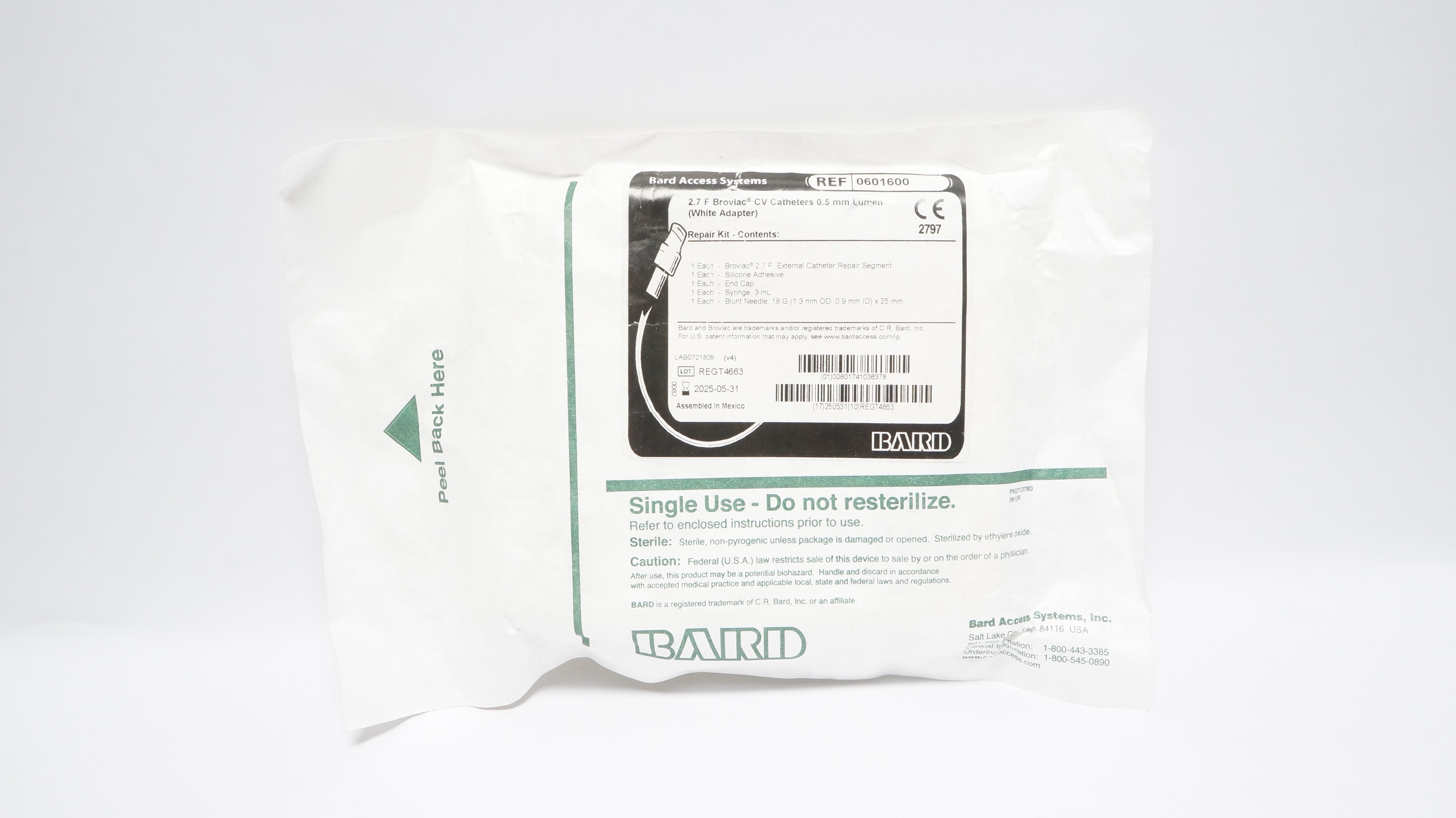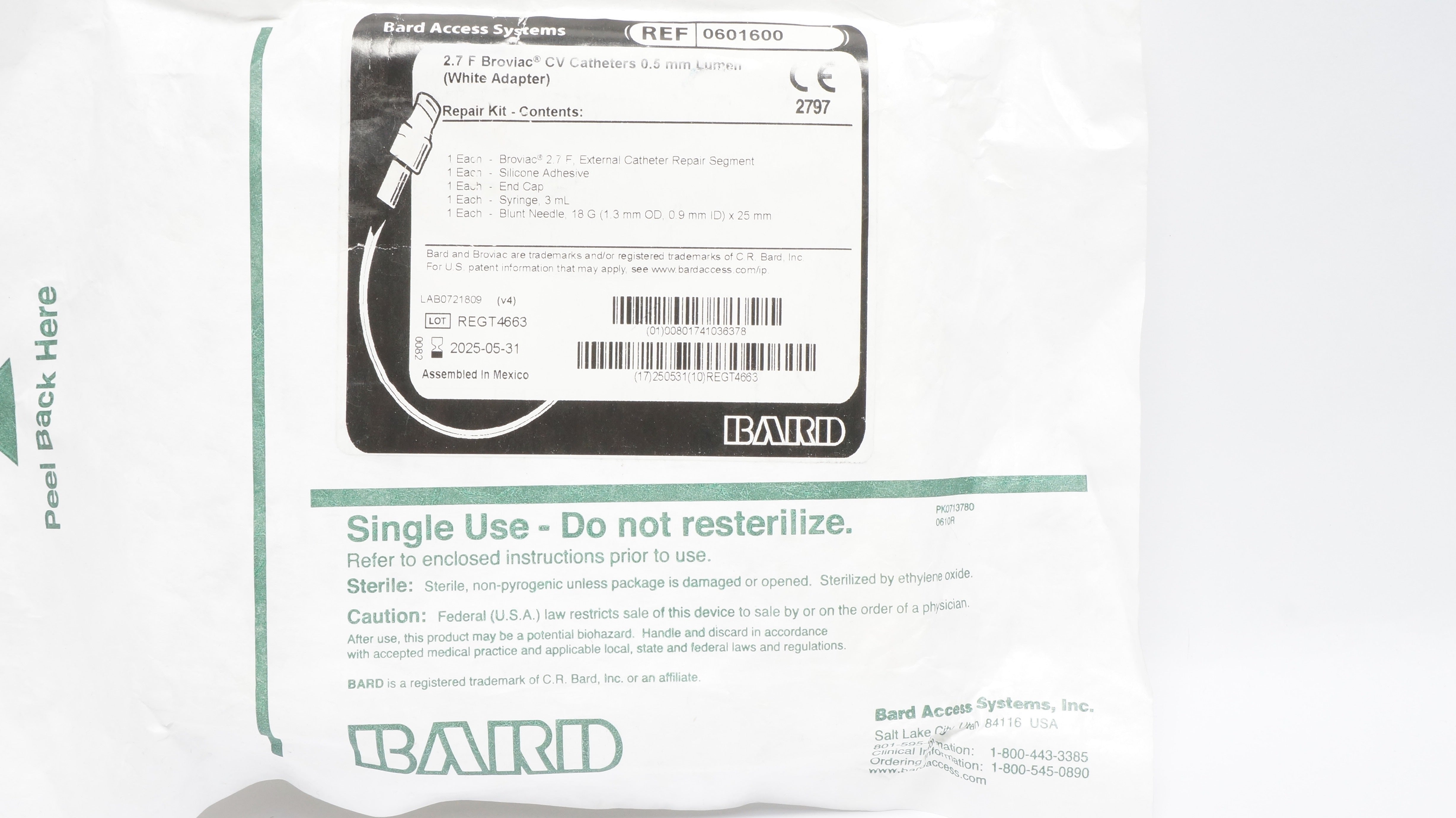 - Bard 0601600 2.7F Broviac CV Caths. 0.5mm Lumen Repair Kit (x)