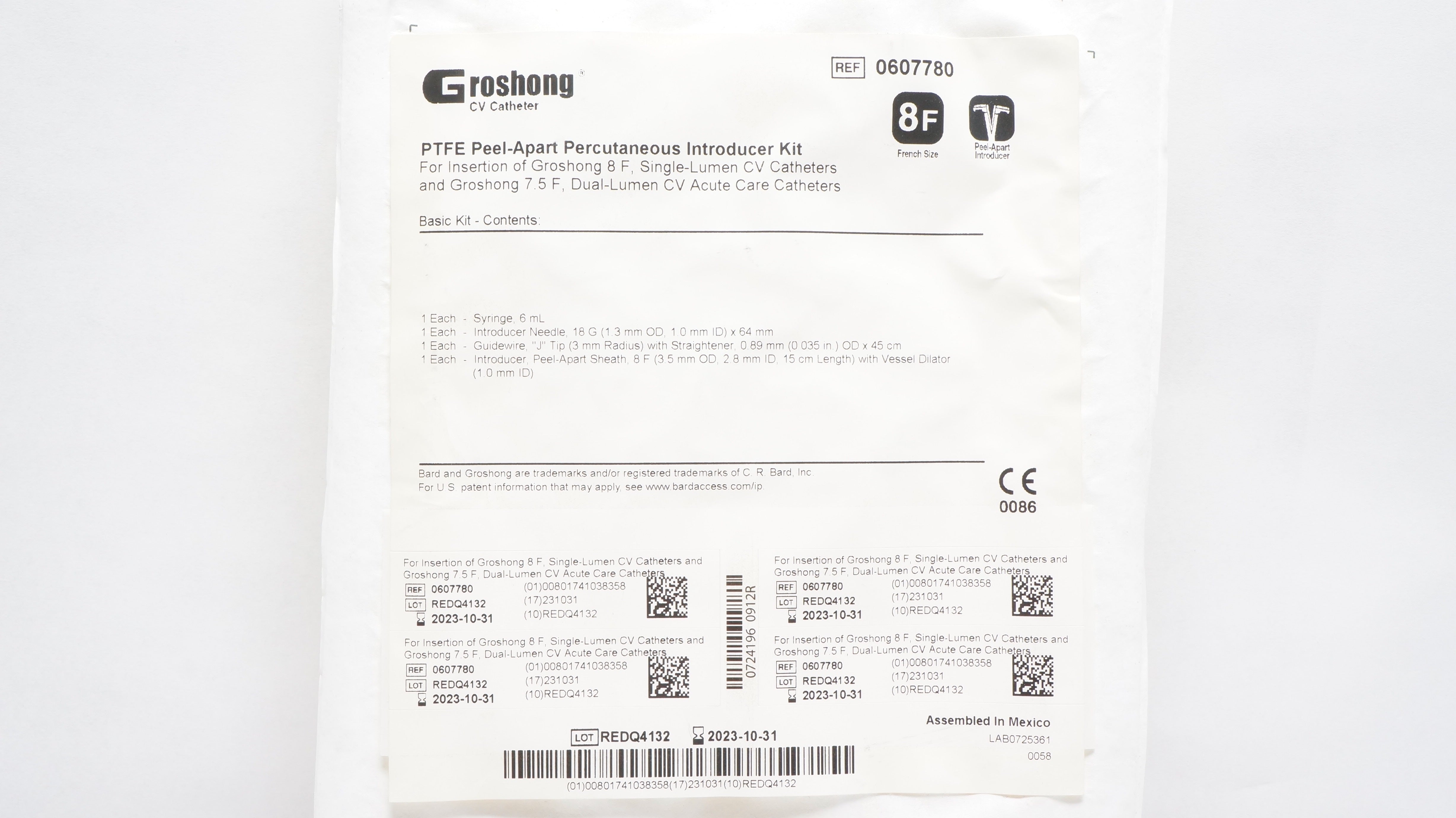 - Bard 0607780 Groshong 8F PTFE Peel-Apart Percutaneous Introducer Kit 8F (x)