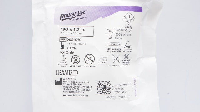 Bard 0651910 PowerLoc Safety Infusion Set 19G x 1.0inch, Priming Volume 0.3mL(x)
