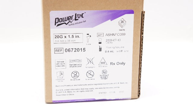 Bard 0672015 PowerLoc Safety Infusion Set 20G x 1.5inch - Box of 20