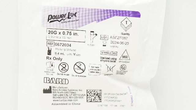 Bard 0672034 Power Loc Safety Infusion Set 20G x 0.75inch Prim. Vol. 0.4mL (x)