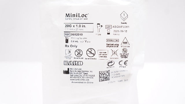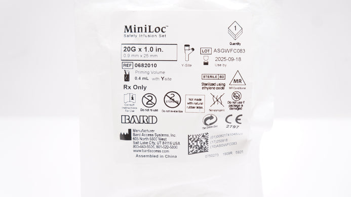 - Bard 0682010 MiniLoc Safety Infusion Set 20G x 1.0inch Priming Volume 0.4mL