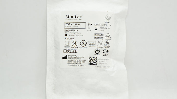 - Bard 0682010 MiniLoc Safety Infusion Set 20G x 1inch, Priming Volume 0.4mL