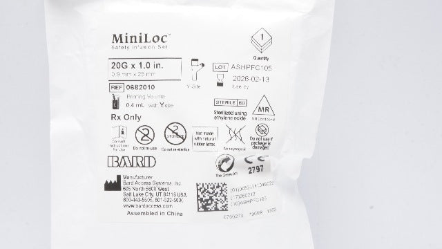 - Bard 0682010 MiniLoc Safety Infusion Set 20G x 1inch, Priming Volume 0.4mL