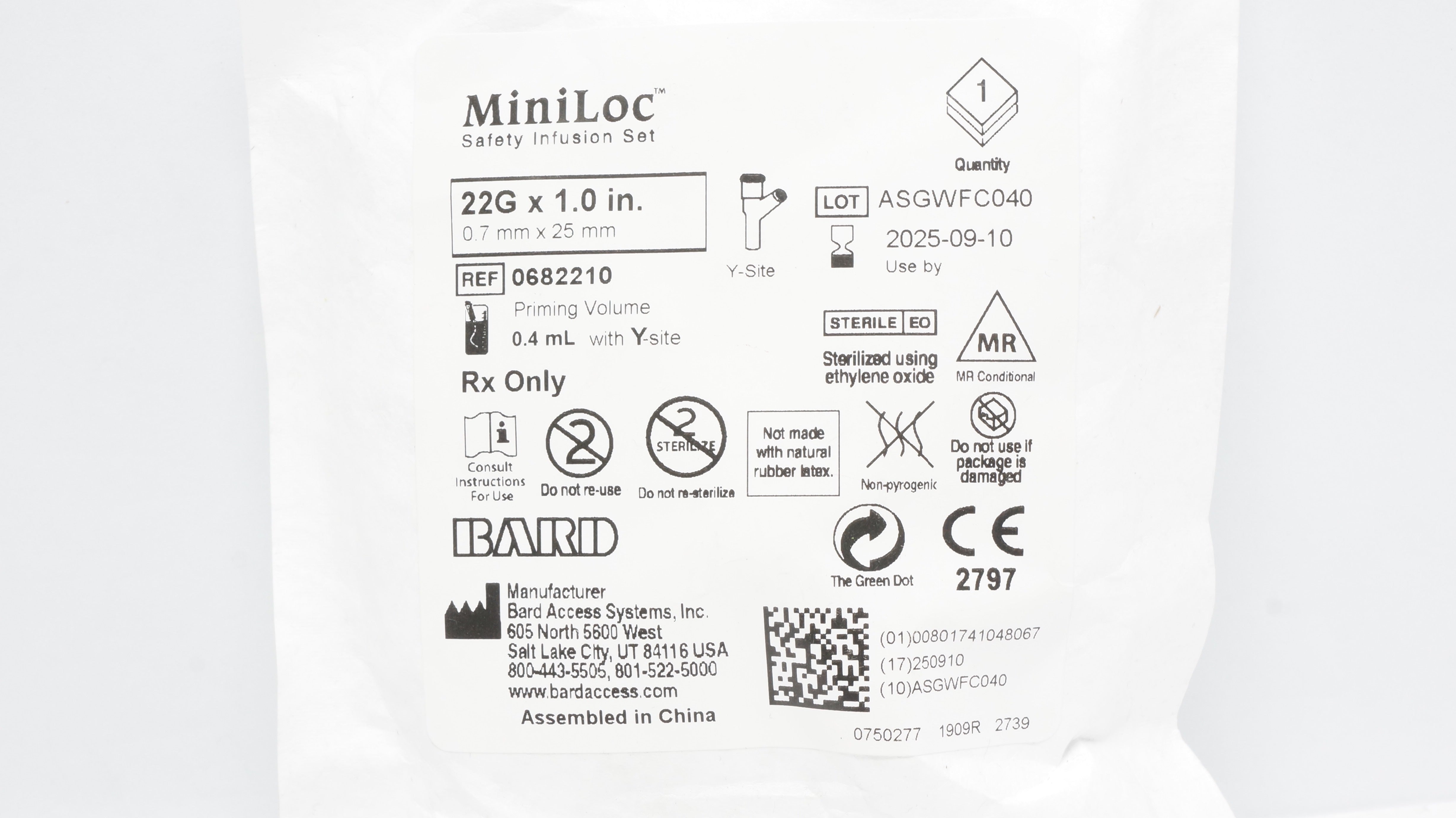 - Bard 0682210 MiniLoc Safety Infusion Set 22G x 1inch (x)