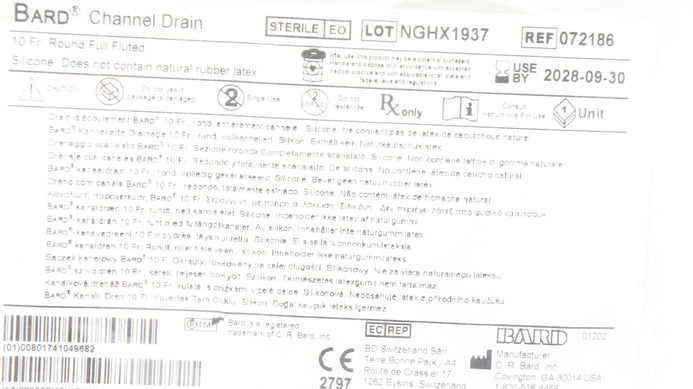 - Bard 072186 Round Full Fluted Silicone Channel Drain 10Fr