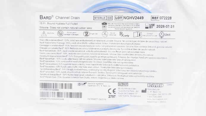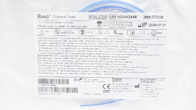 - Bard 072228 Channel Drain Round Hubless Full Fluted, Silicone 15Fr